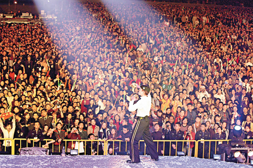 前晚在奧運中心體育場的演出全場爆滿,而場外也極之壯觀,于東南西北四個閘口,最少每一個閘擠了四、五千人;大會雖安排了七百名公安協(xié)助維持秩序,但公安也怕控制不到場面,為防場面失控,馬上急召武警,將場館重重圍著。由于場館內(nèi)外有逾十萬人群離開,堵塞了場口,“華仔”也無法于個唱后離去,要安排公安車進入后臺位置來接;不過因人群太多,公安車也無法開動,花近大半個小時才能駛進場內(nèi)接走“華仔”。而工作人員則于場內(nèi)苦等近四個小時,才可以離開場館返回酒店。