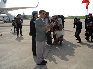張伯清同隊員親切握手,并進(jìn)行了講話,向隊員致以熱烈的歡迎,并希望他們安全、順利、出色地完成聯(lián)合國交給的任務(wù),體現(xiàn)中國警察的風(fēng)范,為國爭光。