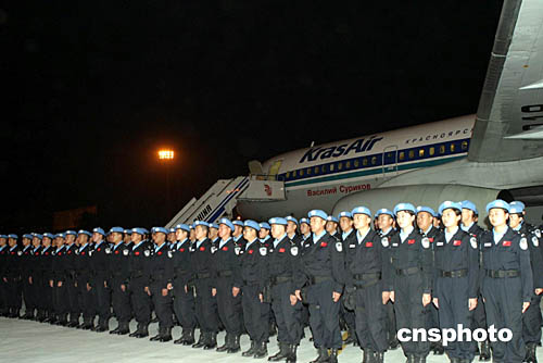 九十五名中國維和警察防暴隊成員十七日乘聯(lián)合國專機從北京首都國際機場出發(fā),前往海地執(zhí)行聯(lián)合國維和任務。這是中國政府第一次向海地任務區(qū)派遣維和警察防暴隊。這支防暴隊隊員平均年齡二十八歲,其中有十三名女警,來自北京、天津等四個直轄市的公安防暴總隊和公安邊防部隊。防暴隊員從今年六月以來,經(jīng)過了四個多月的業(yè)務訓練和外語培訓。