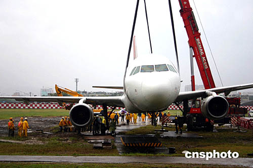 今晨本社記者透過機(jī)場圍墻看到,工作人員正在開動(dòng)吊車吊起事故飛機(jī)。飛機(jī)距離機(jī)場圍墻只有數(shù)十米的距離,在草地中的機(jī)頭已被吊起,改變了飛機(jī)昨晚發(fā)生事故時(shí)尾巴翹起、機(jī)頭朝下的姿態(tài)。但截至發(fā)稿時(shí),此間電視臺(tái)報(bào)道,拖離事故飛機(jī)的進(jìn)程不甚順利。松山機(jī)場最快要到早上九點(diǎn)半才能恢復(fù)運(yùn)營。