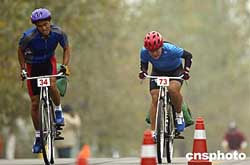十月十九日,全國(guó)第五屆農(nóng)民運(yùn)動(dòng)會(huì)的自行車載重比賽在江西省宜春市舉行。