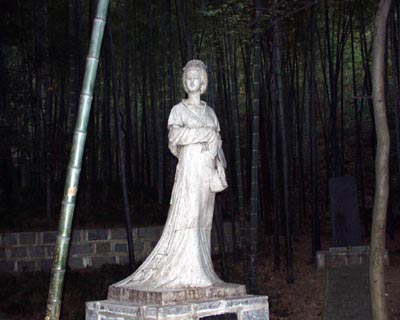 在導(dǎo)游引領(lǐng)下,記者們在竹林深處看到了唐朝武則天的孫女玉真公主的雕像。玉真公主當(dāng)年曾鐘情于李白,但終因門戶觀念阻隔而分離。傳稱,玉真公主后曾尋李白于敬亭山而不遇,終在此削發(fā)為尼,數(shù)年后郁郁而終。此后,李白曾重游敬亭山,感傷不已。