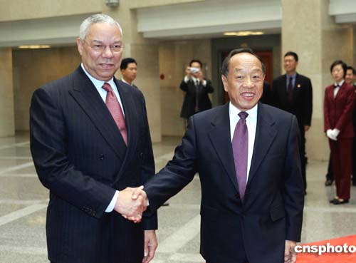 中國(guó)國(guó)家主席胡錦濤會(huì)見(jiàn)美國(guó)國(guó)務(wù)卿鮑威爾