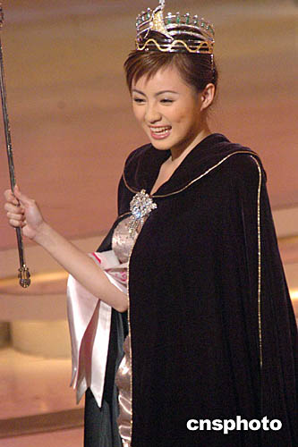 2004亞洲小姐競選總決賽,于十月二十四日晚在香港演藝學(xué)院舉行,來自杭州的佳麗呂晶晶奪得桂冠后,將權(quán)杖任意揮舞有失莊重。中新社記者:錢興強