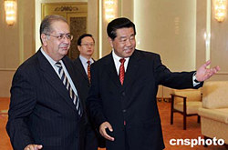 全國政協(xié)主席賈慶林,十月二十五日在北京人民大會(huì)堂會(huì)見葡萄牙議會(huì)外交與歐洲事務(wù)委員會(huì)主席雅伊梅·伽瑪率領(lǐng)的葡萄牙議會(huì)外委會(huì)代表團(tuán)。中新社記者:毛建軍