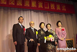 中國駐日本大使館二十五日舉行頒獎(jiǎng)儀式,日本松山芭蕾舞團(tuán)團(tuán)長清水正夫、松山樹子和舞蹈家花柳千代等三位日本藝術(shù)界知名人士榮獲中國文化部頒發(fā)的“文化交流貢獻(xiàn)獎(jiǎng)”。作者:王健