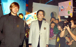據(jù)主辦方介紹,9月以來,索普為Sony產(chǎn)品拍攝的電視廣告和平面廣告在上海、北京、廣州火熱播映。索普此次應(yīng)索尼公司的邀請來到中國,將作為Sony產(chǎn)品代言人參加一系列活動。雖然索普并非第一次來華,而且許多媒體和Fans已經(jīng)有一定的心理準(zhǔn)備,但是當(dāng)索普亮相的瞬間,還是引來陣陣尖叫和騷動,成為名副其實(shí)的“菲林殺手”。