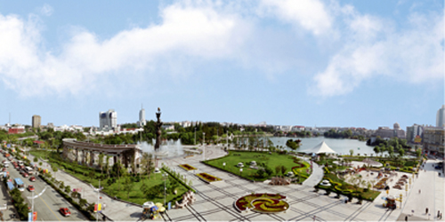 廣場(chǎng)整體上為北高南低、西高東低,強(qiáng)調(diào)其向水性和向陽(yáng)性。人們既可以在這里聽(tīng)音樂(lè)會(huì),又可以在林間小憩、水中嬉戲,還可以在地下商場(chǎng)購(gòu)物,了解蕪湖的人文歷史、廣場(chǎng)與大、小鏡湖、中山路步行街一起,組成了一個(gè)集觀光、休閑、購(gòu)物、娛樂(lè)于一體的城市中心旅游區(qū)。