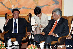 吳邦國委員長與聯(lián)合國人居署副執(zhí)行主任丹尼爾·比奧交談