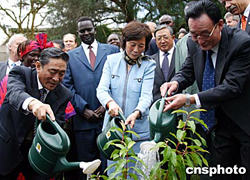 吳邦國委員長在聯(lián)合國駐內(nèi)羅畢總部花園種下合作之樹