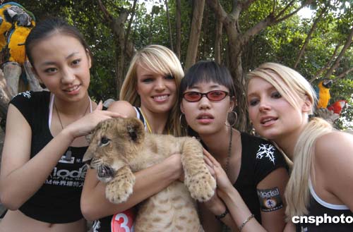 二零零四星際世界模特大賽全球總決賽入圍的五十多名選手,十一月二日首次亮相廣州長隆夜間動物世界進(jìn)行形體展示和外景拍攝。作者:劉衛(wèi)勇