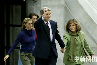 克里與家人投票后走出投票站