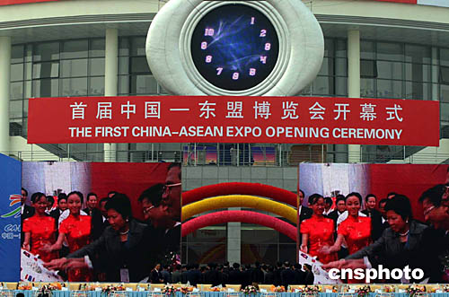 中國(guó)國(guó)務(wù)院副總理吳儀、柬埔寨首相洪森、老撾總理本南、緬甸總理梭溫、泰國(guó)副總理比尼、越南副總理范家謙等中國(guó)、東盟國(guó)家的政要,在開(kāi)幕式上一起按下“時(shí)代之鐘”。