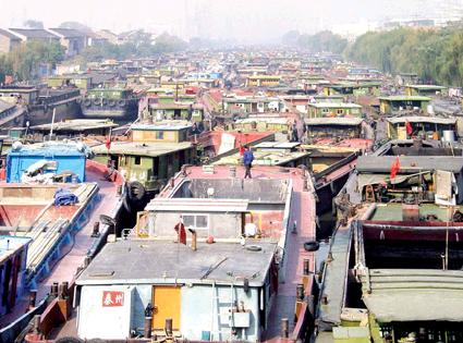 在江蘇常州東郊三號橋至九號橋的河段,短短3公里長的運河,竟來來往往堵了600多條船。岸邊一位姓王的船員說,他們的船是去無錫送石材的,在這已經(jīng)堵了整整兩天,已經(jīng)延誤工期了。盡管目前船上的水和生活用品還勉強可以維持,但隨著后面的船源源不斷地駛來,滯留的船越聚越多,還不知道要等多久呢!