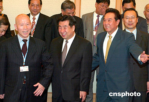 國(guó)務(wù)院副總理回良玉、國(guó)臺(tái)辦主任陳云林、農(nóng)業(yè)部部長(zhǎng)杜青林,十一月八日在北京中南海會(huì)見(jiàn)臺(tái)灣前民進(jìn)黨主席許信良及其率領(lǐng)的“兩岸農(nóng)業(yè)交流訪問(wèn)團(tuán)”。中新社記者:滿會(huì)喬