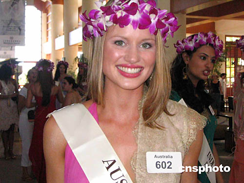 前來三亞參加第54屆世界小姐總決賽的澳大利亞小姐楚楚動(dòng)人,落落大方。