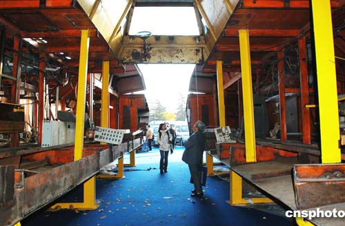 專(zhuān)門(mén)用以走私汽車(chē)的特制“鐵甲飛艇”,在北京舉行的全國(guó)打擊走私成果展上展出。中新社記者:王麗南