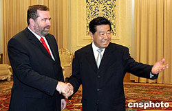 中新社北京十一月十日電(記者邢利宇)全國(guó)政協(xié)主席賈慶林今天上午在人民大會(huì)堂會(huì)見(jiàn)了來(lái)訪的匈牙利國(guó)會(huì)副主席曼杜爾·拉斯洛一行。