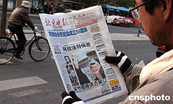 圖:北京市民關(guān)注阿拉法特去世消息