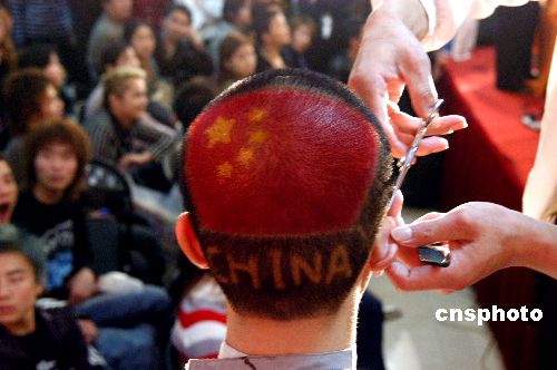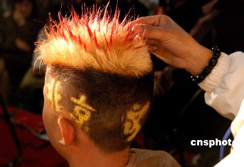 11月11日,第六屆江蘇省美容美發(fā)美甲大賽在江蘇展覽館開幕,各式時(shí)尚、新奇的發(fā)型讓觀眾大飽眼福,其中以2008中國奧運(yùn)為主題而設(shè)計(jì)的兩款發(fā)型十分引人注目。阿董 攝