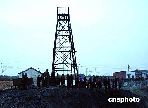 圖為十二日上午當地村民在圍觀發(fā)生爆炸的礦井。