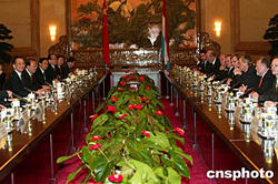 中國國務院總理溫家寶十一月十二日在北京會見盧森堡首相容克。中新社記者:滿會喬