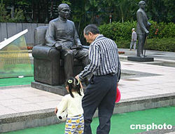 11月12日是孫中山先生誕辰138周年,臺(tái)北舉辦一系列活動(dòng)予以紀(jì)念。圖為一位臺(tái)灣民眾帶著孫女在孫中山紀(jì)念館前。中新社記者:董會(huì)峰