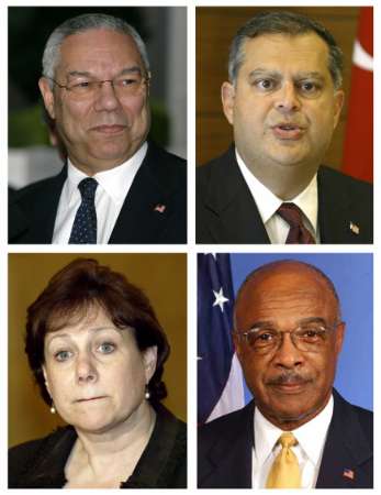 今年六十七歲的鮑威爾曾長(zhǎng)期在美國(guó)軍隊(duì)任職,官至美軍參謀長(zhǎng)聯(lián)席會(huì)議主席、四星上將。鮑威爾是美國(guó)歷史上第一位黑人國(guó)務(wù)卿,在過(guò)去近四年的任上,鮑威爾主張反恐戰(zhàn)爭(zhēng)必須贏得國(guó)際社會(huì)和傳統(tǒng)盟友的支持,為此他多次到聯(lián)合國(guó)作證,代表布什政府堅(jiān)稱伊拉克擁有大規(guī)模殺傷性武器,游說(shuō)國(guó)際社會(huì)支持美國(guó)出兵伊拉克,卻未能如愿。