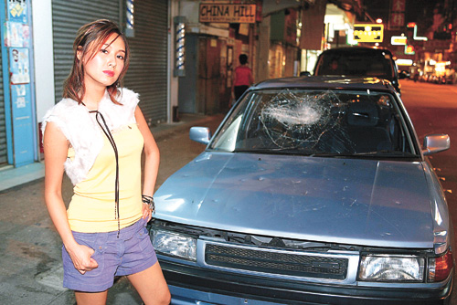 原本導(dǎo)演是要求阿茵執(zhí)起一個大鐵錘大力敲車,但因她不夠力拿起大鐵錘,才改為拿壘球棍。而當(dāng)日他們乃在車房取景,最初阿茵以為車房地方必定又濕又熱,豈料有冷氣設(shè)備,所以拍攝并不是想象般辛苦。到拍攝時,阿茵因沒氣力打毀車子,便找來兩位朋友幫手,而他們十分投入,甚至連玻璃都打破,幸而四濺的碎玻璃并沒弄傷其它人。阿茵說:“其實我都想趁打爛車子時乘機發(fā)泄一下,可是自己氣力不足,想發(fā)泄也不能!