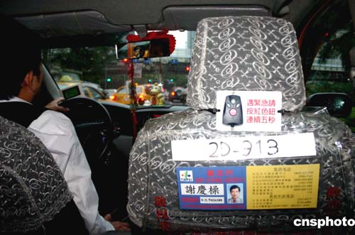 “臺(tái)北衛(wèi)星車(chē)隊(duì)”所屬的計(jì)程車(chē)近日為后排車(chē)座乘客安裝衛(wèi)星SOS,乘客遇到緊急危險(xiǎn)情況時(shí)啟用該裝置,信號(hào)會(huì)直傳車(chē)隊(duì)中心。據(jù)知,目前臺(tái)北市安裝這種呼叫器的計(jì)程車(chē)只有百余輛,在島內(nèi)屬新鮮事。作者:董會(huì)峰