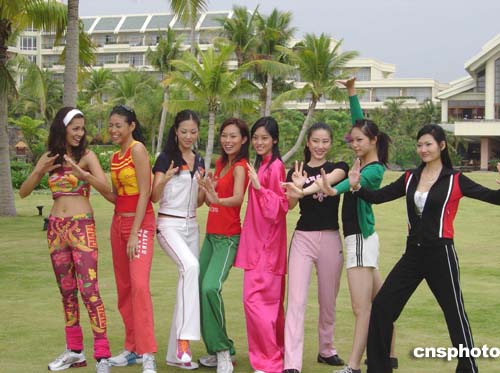 11月17日上午,在海南三亞參加第五十四屆世界小姐總決賽的亞洲區(qū)佳麗在教練知道下練習中國太極拳,為18日舉行的“運動美人”比賽做好準備。圖為練習中的泰國小姐、菲律賓小姐、韓國小姐、香港小姐、中國小姐、馬來西亞小姐、中國臺北小姐、新加坡小姐(從左到右)。作者:張河靜