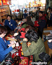 11月19日,數(shù)百名北京市民在菜百商場排隊購買雞年賀歲金條。盡管黃金價格連年看漲,賀歲金條的價格由三年前的99元/克漲至今年的125元/克,仍未擋住北京市民的購買熱情。中新社記者:史利