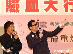 香港明星黃秋生(右)20日出席“骨髓捐贈(zèng)驗(yàn)血大行動(dòng)”,以名人效應(yīng)影響更多人。作者:譚達(dá)明
