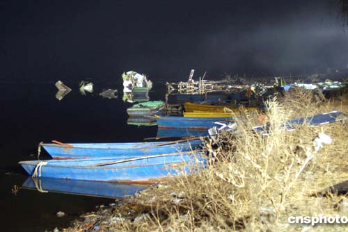 當(dāng)本社記者今晚趕到南湖公園時(shí)看到,空難現(xiàn)場安裝了探照燈,潛水隊(duì)員已撤離,今晚打撈黑匣子作業(yè)暫停。大塊的飛機(jī)殘骸仍在船上,湖面結(jié)了一層薄冰。事故之后的南湖一片靜寂。