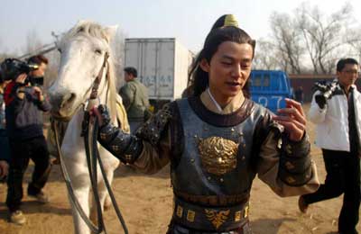 中新網(wǎng)11月22日電 據(jù)北京娛樂信報報道,昨(21)天,記者來到大興一荒郊樹林,采訪了正在那里拍攝四十集古裝荒誕劇《正德演義》的主持人何炅。該劇中他飾演明朝正德皇帝朱厚照,不過,讓記者怎么看怎么覺得他還是那個能說會道的名嘴。