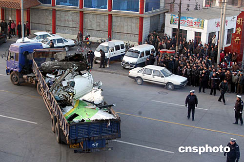 圖:包頭空難飛機(jī)殘骸運(yùn)離現(xiàn)場