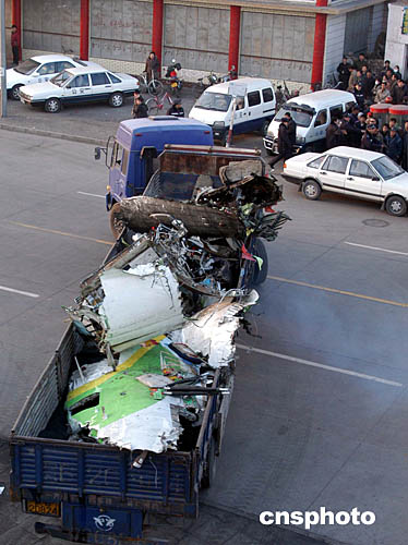 圖:包頭空難飛機(jī)殘骸運(yùn)離現(xiàn)場