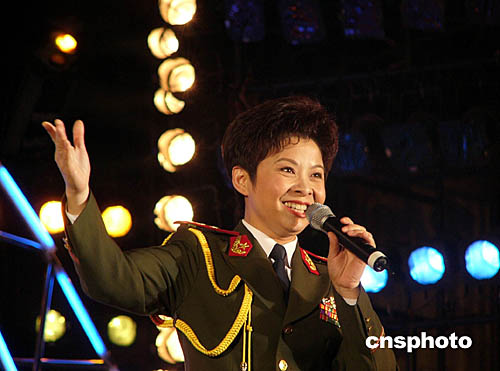 “中國金柚之鄉(xiāng)”廣東省梅州市梅縣22日晚在梅縣人民廣場舉行盛大焰火煙花文藝晚會,慶祝第三屆金柚節(jié)隆重開幕,吸引了近萬名海外僑胞和市民參加。圖為中國著名歌手董文華為僑鄉(xiāng)父老帶來了經典的《春天的故事》。作者:卜瑜