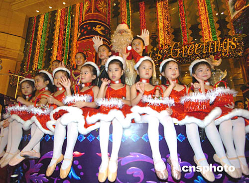 香港時代廣場2004圣誕月24日晚拉開序幕﹐今年的圣誕節(jié)裝飾以《閃爍時代夢幻曲》為主題。中新社記者:趙振清