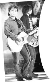 水木年華(以下簡稱水木):我們不唱民謠不是因?yàn)椴缓觅u了,我們現(xiàn)在的歌迷都是喜歡我們的民謠的,只是我們希望比以前能有些變化,加了搖滾的音樂元素會給人一種全新的感受,其實(shí),在這個(gè)新專輯中還有民謠。