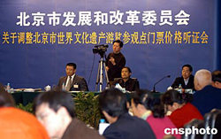 | 頤和園、故宮、八達(dá)嶺長(zhǎng)城、天壇、定陵、長(zhǎng)陵六處北京市世界文化遺產(chǎn)門票價(jià)格擬調(diào)整,十一月三十日該六處游覽參觀點(diǎn)門票價(jià)格調(diào)整聽(tīng)證會(huì)在京舉行,北京市發(fā)展和改革委員會(huì)官員、專家學(xué)者等出席聽(tīng)證會(huì),市民代表旁聽(tīng)。其中,作為北京市民晨練休閑的場(chǎng)所,頤和園、天壇的門票上漲幅度最為旁聽(tīng)市民代表關(guān)注。作者:徐曦弋