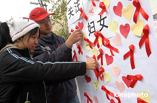 國(guó)務(wù)院防治艾滋病工作委員會(huì)辦公室、中宣部、衛(wèi)生部、全國(guó)婦聯(lián)、教育部、商務(wù)部、共青團(tuán)中央、國(guó)家廣電總局、北京市人民政府等今天在北京聯(lián)合舉辦了“關(guān)注婦女,抗擊艾滋——各界婦女心系紅絲帶倡議行動(dòng)”的大型主題活動(dòng)。全國(guó)婦聯(lián)向各界的婦女姐妹們發(fā)出“行動(dòng)起來(lái),積極投身抗擊艾滋的工作中,為人類的健康貢獻(xiàn)自己的一份力量”的倡議書。