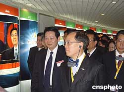 十二月一日,香港特別行政區(qū)政務(wù)司司長(zhǎng)曾蔭權(quán)率領(lǐng)考察團(tuán)一行一百二十多人訪問廣東省汕頭市。汕頭市長(zhǎng)黃志光(左一)和曾蔭權(quán)(右一)在參觀汕頭信用建設(shè)館。作者:李怡青
