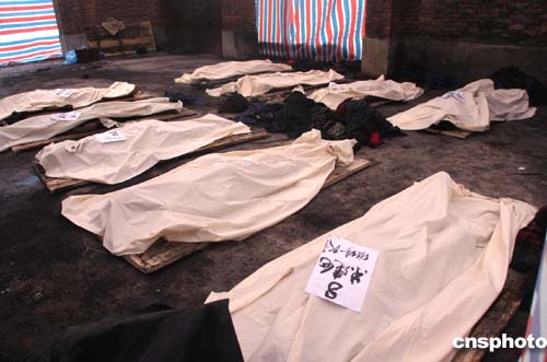 | 十二月一日,陜西銅川礦務(wù)局陳家山煤礦救險指揮部確認(rèn)井下礦工已經(jīng)沒有生還的可能,可以確認(rèn)全部遇難。當(dāng)日,有關(guān)部門在礦區(qū)一處偏僻地搭建臨時停尸棚,凌晨首批升井的遇難礦工遺體安置在這里,準(zhǔn)備讓家屬認(rèn)領(lǐng)善后。作者:任晨鳴