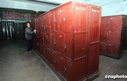 12月1日,陜西銅川礦務(wù)局陳家山煤礦搶險(xiǎn)救援指揮部確認(rèn)井下礦工已經(jīng)沒有生還的可能,161名礦工可以確認(rèn)全部遇難。當(dāng)日下午,一名保管員在礦工浴池細(xì)心擦拭部分遇難礦工下井前存放衣物的更衣箱,等待他們的親屬認(rèn)領(lǐng)。作者:任晨鳴