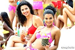 來(lái)自世界各地的美女云集三亞,在藍(lán)天碧海之間,如花似蝶,向地球村的人們展示她們的美麗。婀娜的身姿、惹火的身材、調(diào)皮的笑容,在流行的節(jié)拍里,世姐們帶來(lái)了一種久違的性感。