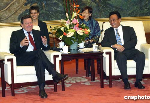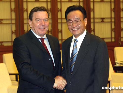 施羅德贊同吳邦國對德中關(guān)系的評價。他說,中德關(guān)系建立在相互信任的基礎(chǔ)上,各個方面的合作都很好。德國政府重視德中關(guān)系,將繼續(xù)堅(jiān)持一個中國政策。德方愿進(jìn)一步加強(qiáng)兩國議會業(yè)已存在的良好合作關(guān)系。同時,愿繼續(xù)加強(qiáng)與中國的民間交往,以及文化交流。德方愿與中方一道使德中關(guān)系始終保持高水平的發(fā)展。