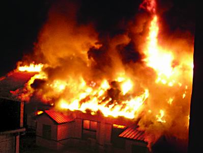 “火苗從屋頂往上噴,并向西邊液化氣站蔓延!弊≡3樓的學(xué)生說,他們撤到學(xué)校的操場(chǎng)上,聽到第一次爆炸聲。隔了10分鐘后響起了第二次爆炸聲。