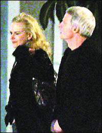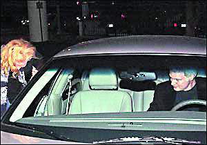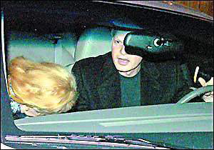 當(dāng)晚,身著藍(lán)色毛衣和黑色休閑外套的史蒂夫用他的林肯轎車載著迷人的妮可前往他的錄音棚,車子一到達(dá),妮可就迫不及待地鉆進(jìn)去。妮可系著一條花絲巾,穿著一件黑色西服上衣,下車前,妮可不忘左張右望,看了又看。發(fā)現(xiàn)有人拍照時(shí),機(jī)警地低下頭并用手遮臉,但神情并不慌張,臉上倒掛著甜蜜的笑。一路上兩人談?wù)勑π,廝守3個(gè)小時(shí)后,史蒂夫才送妮可回家,兩人牽手下車,朝妮可家中走去。