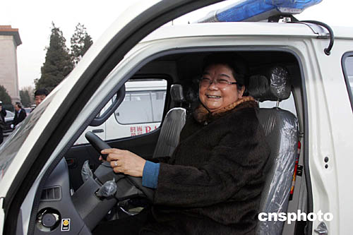 | 由全國婦聯(lián)、國務院婦女兒童工作委員會主辦的大型公益項目--“母親健康快車”發(fā)車儀式十二月十日在北京人民大會堂舉行,五十多輛滿載社會各界愛心人士祝福和希望的“母親健康快車”從天安門廣場出發(fā),分別開往甘肅、青海、陜西等省為西部貧困母親開展衛(wèi)生健康服務。全國人大常委會副委員長、全國婦聯(lián)主席顧秀蓮出席發(fā)車儀式,并親自參觀、乘坐“母親健康快車”。中新社記者:毛建軍